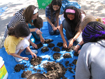 Your vermicompost harvest will consist of a beautiful nutrient-rich soil, guaranteed to attract plant owners and green thumb enthusiasts. This is an excellent opportunityto fundraise for a Unit trip. Brainstorm ways to sell this earthy organic material. For the outside gardener, place the soil in a large reusable bag, or if customers desire a smaller amount, fill clean juice or milk cartons and sell those. Or, make "worm poo eggs;' by moulding the damp soil into egg shapes, letting them dry, and filling egg cartons to sell. By dropping a vermicompost egg into a watering canister, your customers can easily add nutrients to their plants when watering.